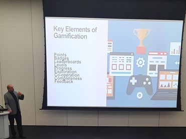 We were given a fast-paced tour of gamification and its potential uses in policing. Superintendent James Sutherland, Head of Organisational Development for Cambridgeshire Constabulary, presented the results of his own work to use gamification to promote greater workforce motivation, through use of team leaderboards, progression badges, and ratings given by victims and other service users. The session showed how game mechanics can boost engagement and lead to improvements.